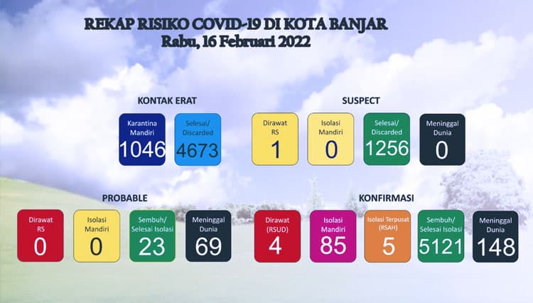 Tercatat 4 pasien mendapatkan perawatan intensif di RSUD Kota Banjar sementara 5 pasien menjalani isolasi terpusat di RS Asih Husada dan 85 orang menjalani isolasi mandiri di rumahnya dengan pengawasan ketat Satgas di setiap lingkungannya masing-masing.
